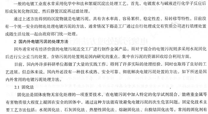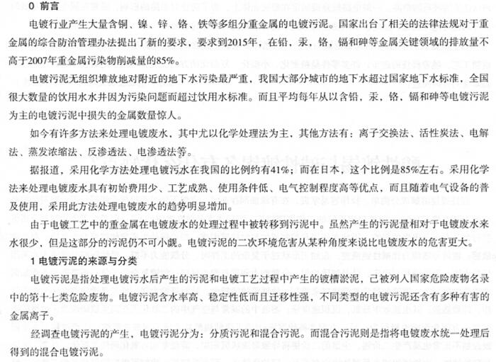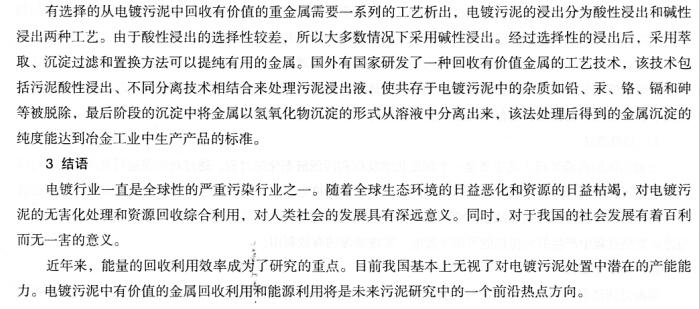 摘要——電鍍污泥含有一定量的銅、鎳、鉻、鋅等金屬,屬于危險廢物。對其中的金屬(尤其是重金屬)進(jìn)行資源化利用,能有效地消除電鍍污泥重金屬的二次污染,同時也能帶來可觀的經(jīng)濟(jì)和環(huán)境效益。本文介紹了電鍍污泥的來源與分類,重點介紹了電鍍污泥的國內(nèi)外處理方法,為今后的研究提供一些思路,最大限度的減少重金屬污染。